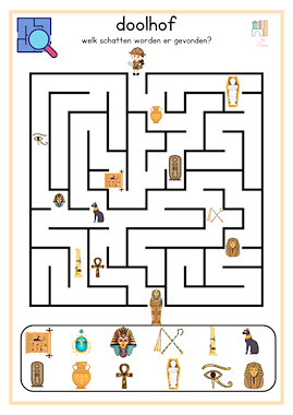 werkboek rondom het thema Egypte en piramides bevat 18 pagina's met; - 1x klap het woord - 1x woorden maken - 2x doolhof - 3x rekenen en nog veel meer!