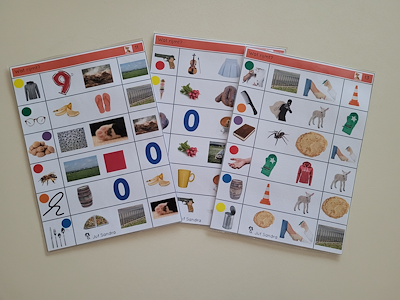 Primo Piccolo rijmen 3 Logico Primo. Blauw opdrachtenbord met 6 antwoord stippen. Voor en achterkant. Op de achterkant zijn de antwoorden te zien. 10 x Wat rijmt? 3 x Wat rijmt? Kiezen uit 2 woorden 3 x Wat rijmt? Kiezen uit 3 woorden
