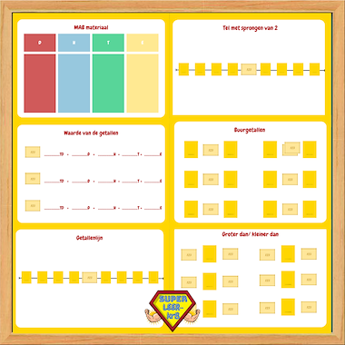 In deze bundel vindt u verschillende fiche’s terug om getallenkennis tot 100, 1000 of 10 000 te oefenen. Deze kunnen op een zelfstandige basis meerdere malen gebruikt worden na enige toelichgting. U gebruikt voor deze fiche’s best de getalkaarten en de MAB kaarten gratis te vinden bij ons profiel op samen voor onderwijs. SIDENOTE: I.P.V. de getalkaarten kunnen ook bingo balletjes gebruikt worden , een online getallenkiezer of u kunt zelf de getallen dicteren.