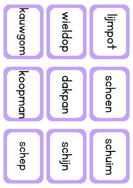 bestaande uit; 72 woordkaarten spelregels templates om te lamineren en te gebruiken als whiteboard spelregels; 1. Pak een kaart en lees die voor 2. De andere schrijft het woord op 3. Woord goed? Mag de andere hem houden. Woord fout? Leg hem terug in de stapel. 4. Wissel van beurt 5. Bom gepakt? Al je kaarten terug in de stapel! 6. Je wint als je na 10 minuten de meeste kaarten hebt.