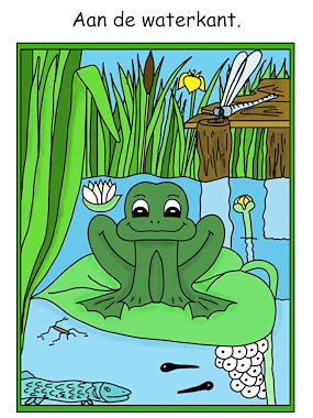 aan de waterkant kikker kikkerdril snoek libelle riet sloot plas waterlelie kikkervisje
