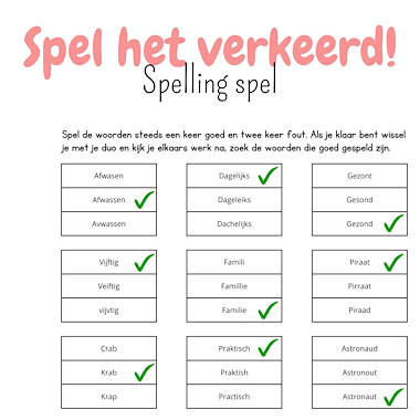 • spelling spellingregel spelend leren cooperatief spellingsfouten spellen spel basisonderwijs woorden werkwoordspelling