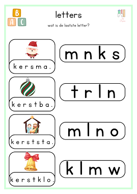 Werkboek rondom het thema kerst voor meer uitdaging bij groep 2 leerlingen, of intensivering voor groep 3 leerlingen.
