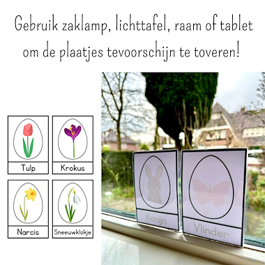 Tover woordkaarten Lente en Pasen Tover de plaatjes tevoorschijn met licht! 40 magische woord kaarten voor peuters en kleuters Tover de plaatjes tevoorschijn met een zaklamp, lichttafel, raam of tablet. Zie de verwondering bij de kinderen en stimuleer de taalontwikkeling. 40 grote woordkaarten, 4 per bladzijde. Met onder andere; kip, kuiken, nest, ei, paasei, paashaas, bloem, konijn, vlinder, tulp, lammetje, veulen, kikkerdril, tractor en nog veel meer! Inclusief versie met lidwoorden