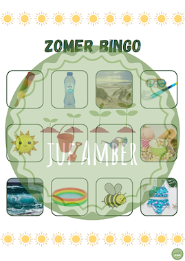 Bingo met 20 verschillende bingokaarten in het thema 'De zomer'.