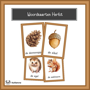 Duik in de wereld van de Herfst met dit digitale document vol leerzame woordkaarten. In dit pakket vind je 37 kaarten met o.a. woorden rondom herfstvruchten, herfstbladeren en de regen. De kaarten zijn beschikbaar met én zonder lidwoord. Daarnaast krijg je vier prachtige posters van o.a. een eekhoorn, egel om je ruimte herfstklaar te maken!