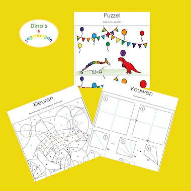 dino dino's dinosaurus werkboekje onderbouw beginnende geletterdheid leren lezen leren rekenen leren schrijven knutselen