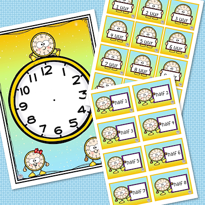 Verschillende spelletjes om te oefenen op de klok ( hele en halve uren).