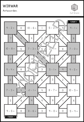 Deze download bevat een WIRWAR doolhof om gratis uit te proberen. Het zijn sommen om het aftrekken t/m 10 te automatiseren. Het is geschikt voor groep 3/4. Er is ook een bundel met nog eens 10 doolhoven! Kijk daarvoor op www.jufbrenn.nl. Mis niets en volg mij op Facebook & Instagram!