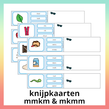 kwartet → MKM-woorden met tweeklanken → woordniveau → technisch lezen knijpkaarten → clusterwoorden → woordniveau → begrijpend lezen dominospel → eenvoudige samenstellingen → woordniveau → technisch lezen verzamelspel → mix → woordniveau → technisch lezen