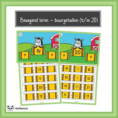 Verspreid over het schoolplein liggen 10 kaarten, elk met drie hooibalen. Op de middelste hooibaal staat een getal variërend tot 30. De kinderen zoeken de kaarten op en noteren de buurgetallen van elk gevonden getal op hun eigen werkblad. Zo leren ze spelenderwijs na te denken over de volgorde van de getallen en genieten ze tegelijkertijd van een actieve buitenactiviteit.