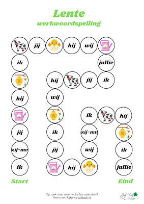 spelling werkwoordspelling lente bordspel dobbelen www.jufdaph.nl